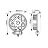 Pracovní reflektor LED 9 diod á 3 W celkový příkon 27 W, světelný tok 2 250 lm, napětí 10 - 30 V. Krytí IP68. Rozměr lampy 115 x 115 x 55mm.